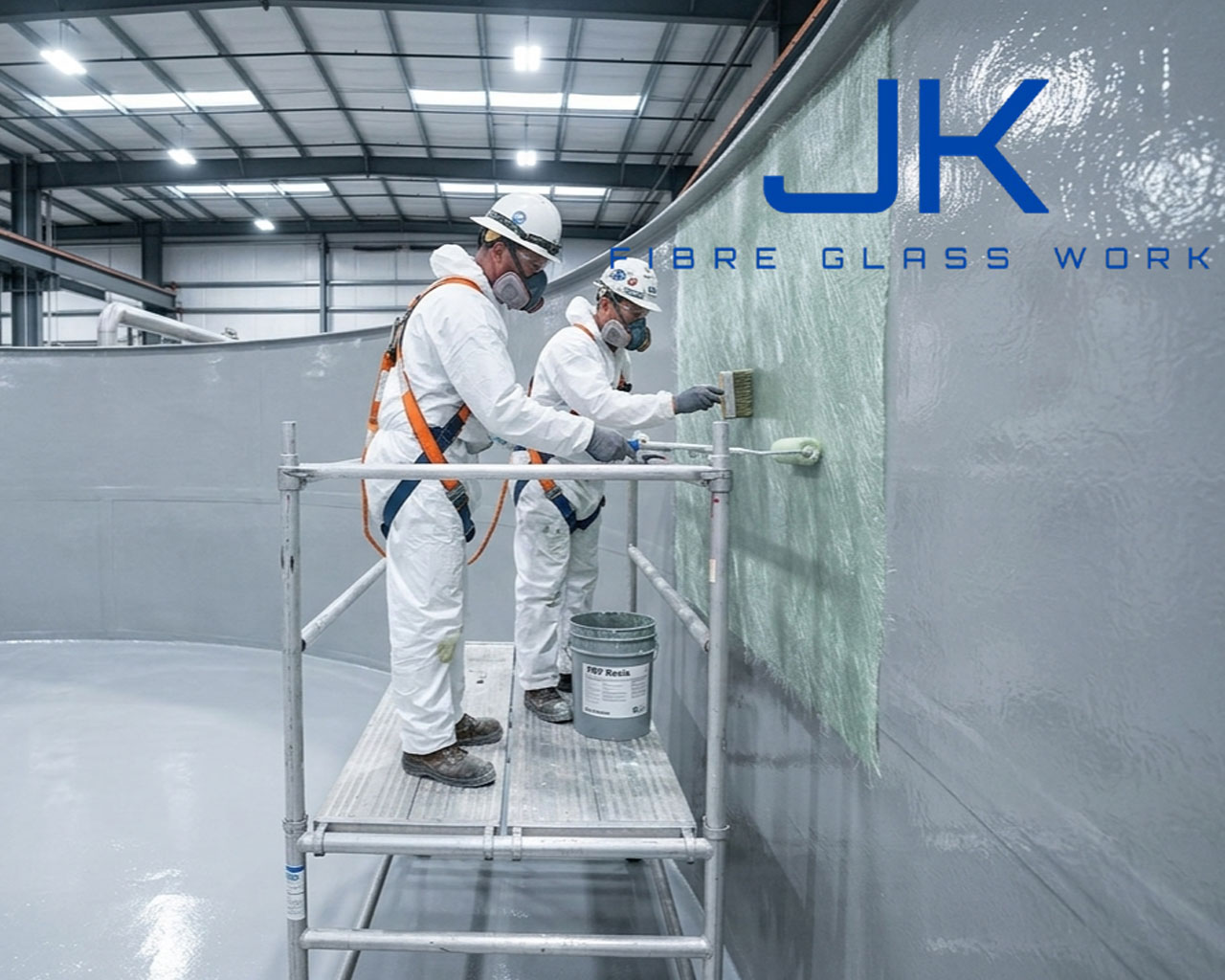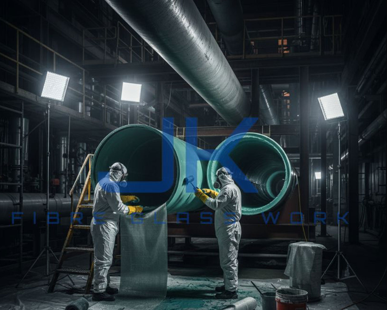 We J.K.FIBRE GLASS WORKS are pioneers in the field of FRP LINING. There are two methods of FRP LINING. One is Hand operated FRP LINING where lining is done by hand and another method where spray pump is used for lining installation. In any method first proper sand blasting of the surface is essential to remove any part corroded in order to get clean surface. We, J.K.FIBREGLASS WORKS give FRP LINING service to various industries like chemical industry, water treatment plant . FRP LINING is applied to chemical storage tanks, scrubbers,chimneys and FRP Blowers.